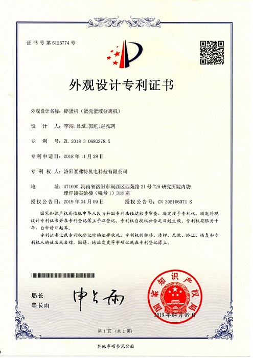 洛陽(yáng)賽弗特機(jī)電科技有限公司成立于2015年,本公司自主研發(fā)生產(chǎn)敲蛋機(jī)(單排敲蛋機(jī)、雙排敲蛋機(jī)、三排敲蛋機(jī)、四排敲蛋機(jī)等);全自動(dòng)水中上蛋、洗蛋、烘干、噴碼、噴油、裝托等蛋品處理生產(chǎn)線的各環(huán)節(jié)設(shè)備;蛋清蛋黃分離器、蛋殼破碎機(jī)等蛋品處理生產(chǎn)線配套設(shè)備。產(chǎn)品門(mén)類(lèi)齊全、設(shè)備組合配套能力強(qiáng),深受客戶好評(píng)和肯定。 目前共研發(fā)可批產(chǎn)設(shè)備30多種,同時(shí),應(yīng)對(duì)用戶的不同需求,還為特殊要求的用戶開(kāi)發(fā)和生產(chǎn)非標(biāo)類(lèi)、特殊...